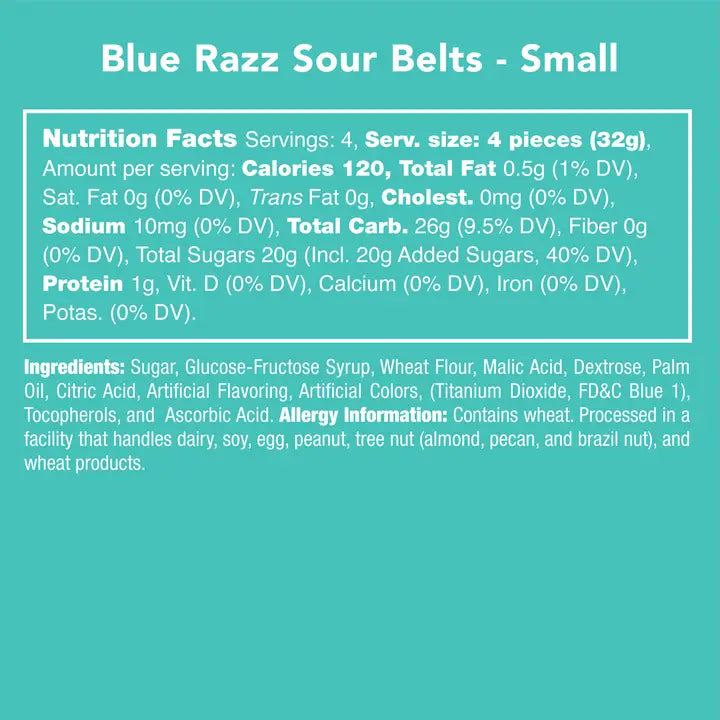 A berry-rific mix of sweet and tart bliss, these chewy blue raspberry candy belts come dusted with a delicious, perfectly pucker-inducing sour sugar coating, bringing together the perfect balance of sweet and sour sure to leave your taste buds tingling with delight. So grab a jar of these candy Blue Raspberry Sour Belts and get ready to pucker up. Vegan-Friendly.