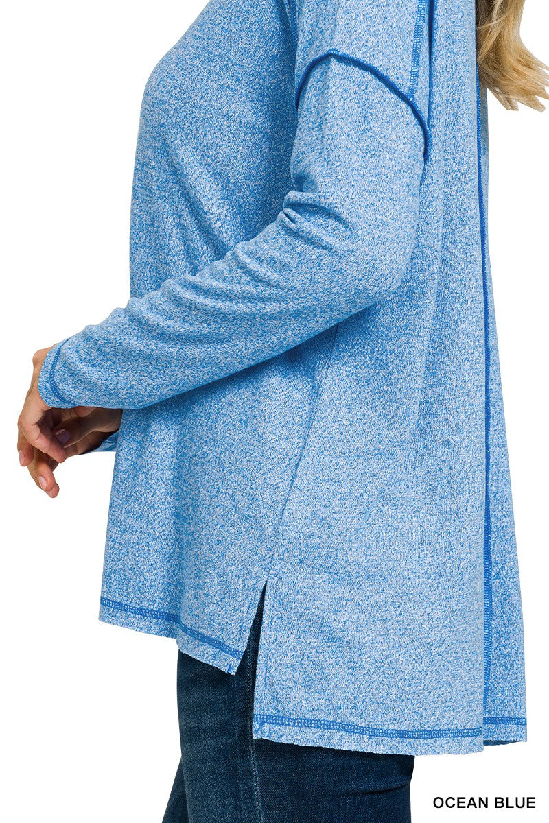 A must-have staple for effortless everyday style. This heather grey long sleeve top features a relaxed tunic fit with side slits for easy movement and a flattering drape. Designed with soft, lightweight fabric, it’s perfect for layering or wearing solo. The rounded neckline and casual silhouette make it an easy choice for jeans, leggings, or lounge pants.