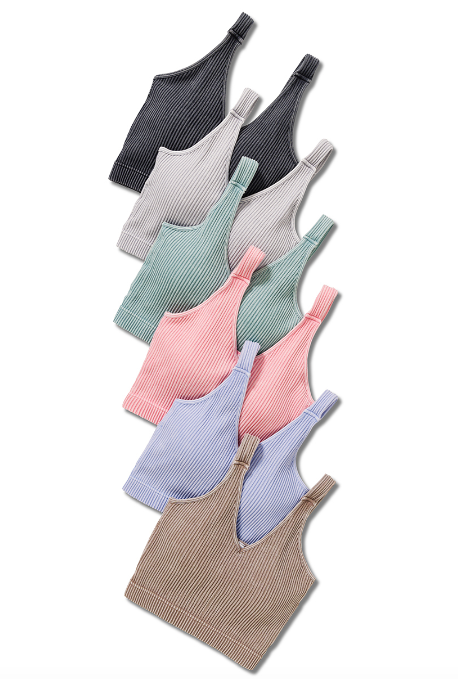 WASHED RIBBED CROPPED SEAMLESS BRA PADDED TANK TOP- REMOVABLE BRA PAD
