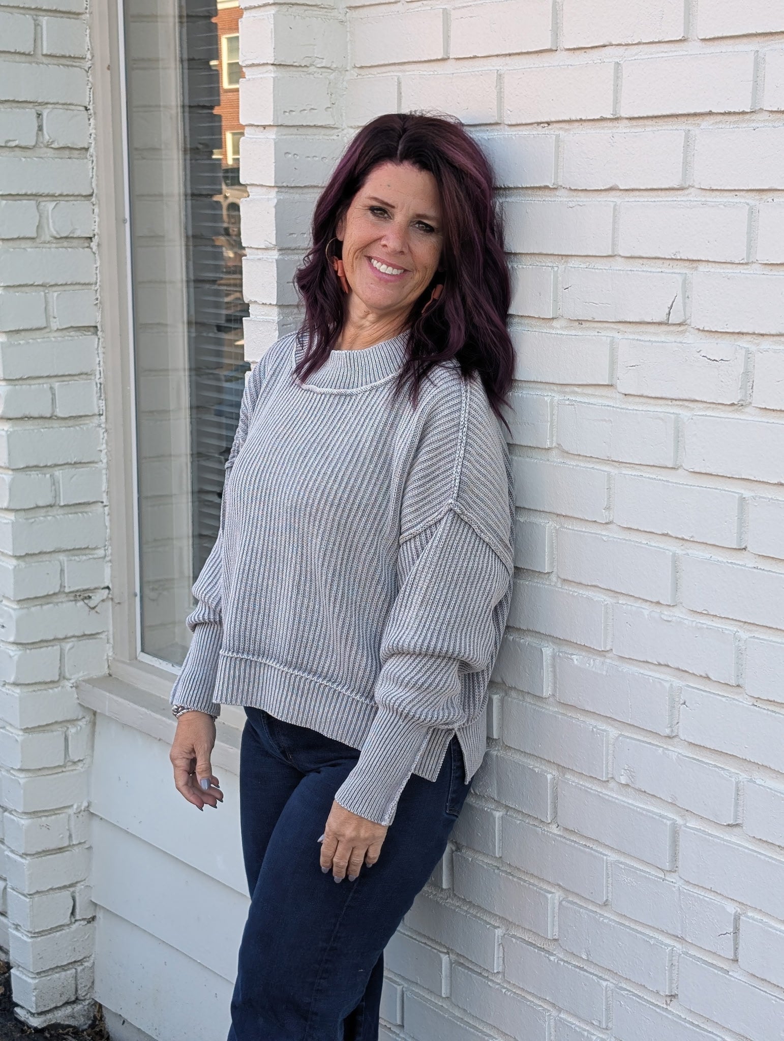 WASHED SIDE SLIT OVERSIZED CROPPED SWEATER